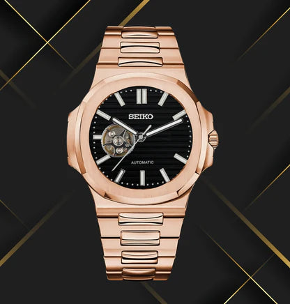 Seiko Nautilus Mod Rose Gold (Open Heart) - Black