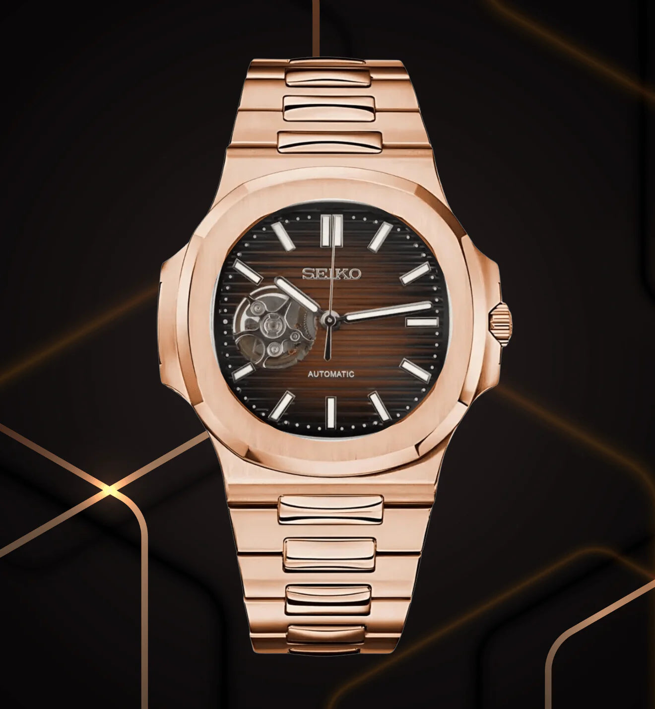 Seiko Nautilus Mod Rose Gold (Open Heart) - Chocolate Brown
