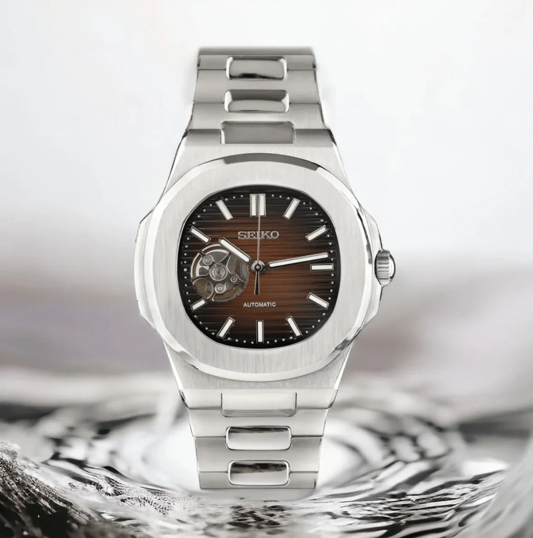 Seiko Nautilus Mod Silver (Open Heart) - Chocolate Brown